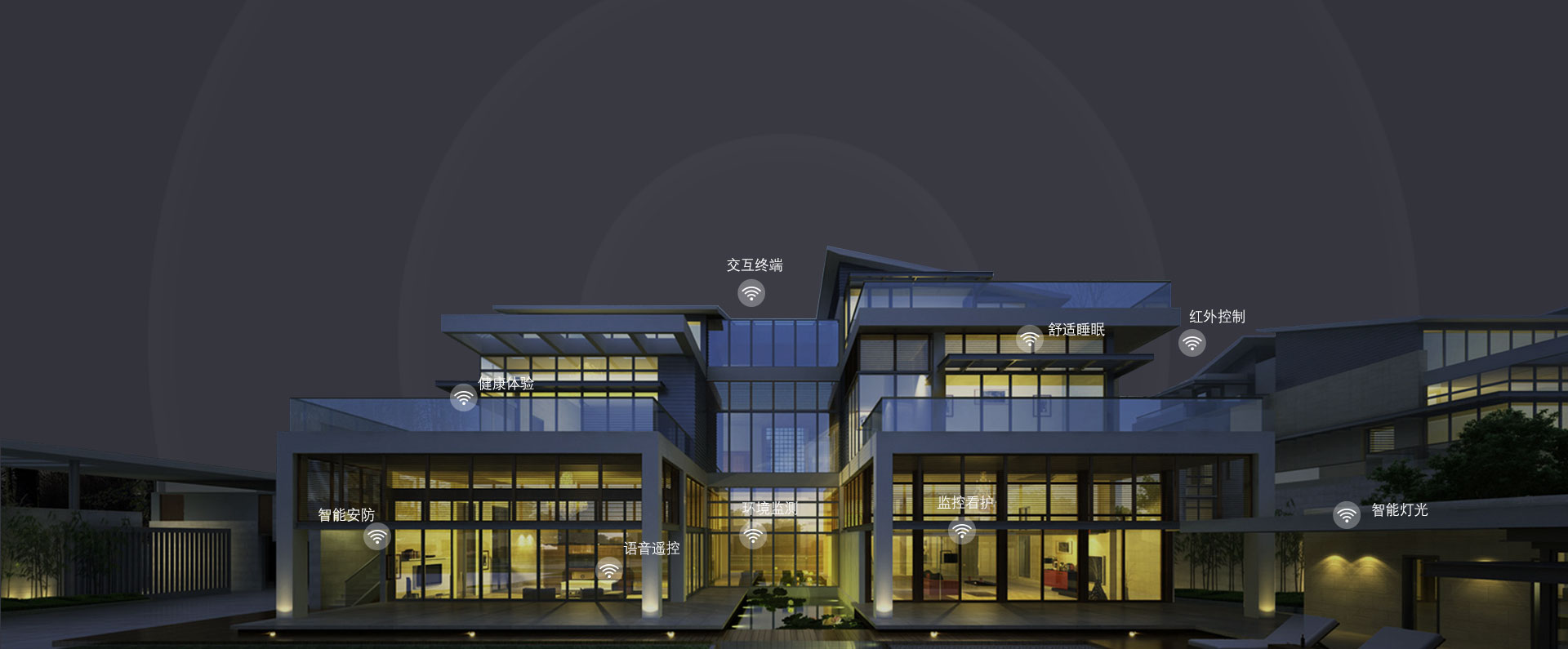 監控看護 舒適睡眠 交互終端 智能安防 健康體驗 環境監測 智能燈光 智能出行